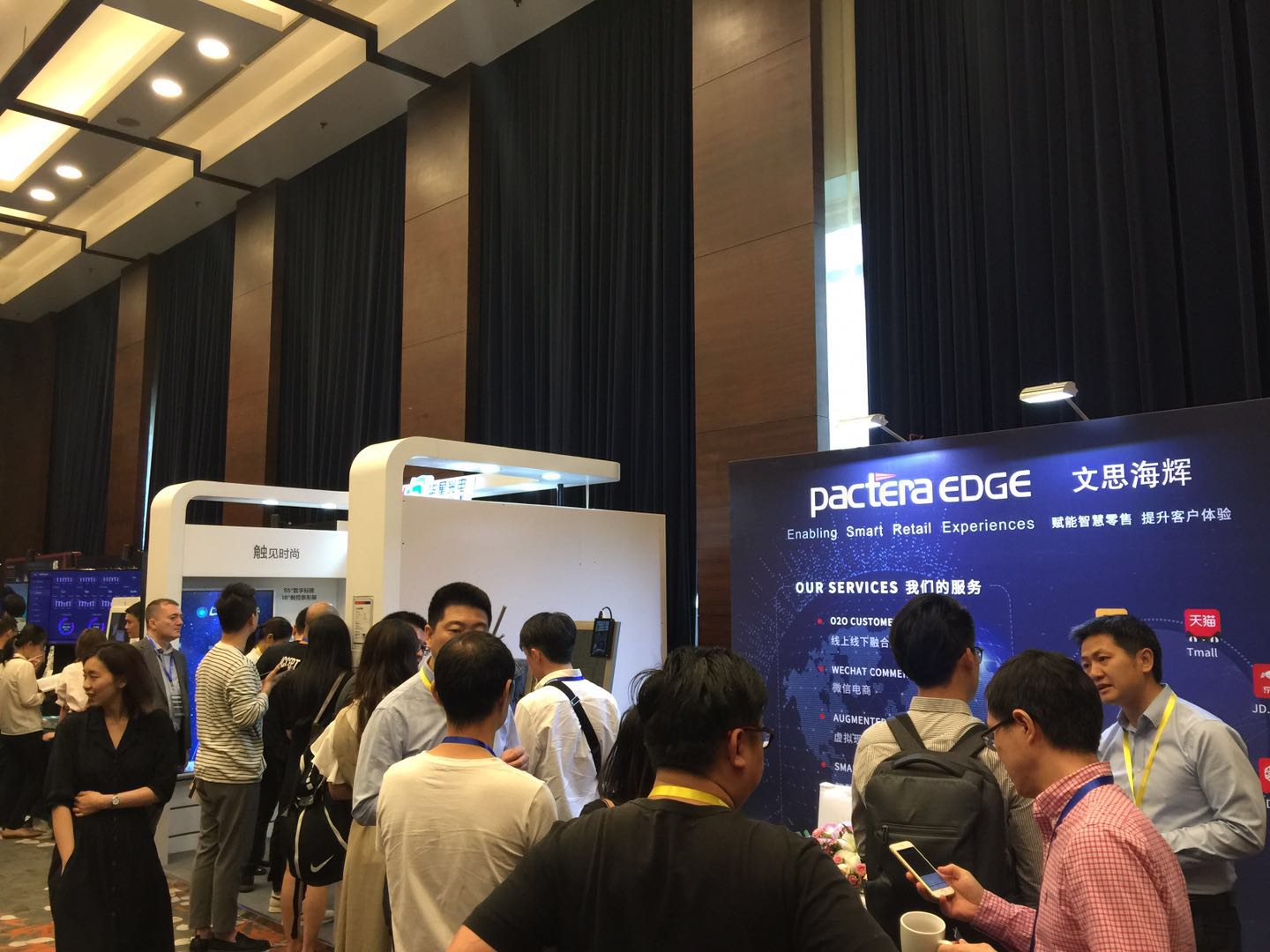 本次会议聚焦如何帮助零售商和品牌商通过数字化革命驱动销售收入、ROI增长以及消费者体验提升,开展了“未来商店”、“移动创新”、“‘小’数据”、“AI驱动商业”、“新零售业态”等多个热点议题,安排了有关智慧零售的多场演讲,可谓干货满满。在会场,文思海辉带来了新零售线上线下融合策略、新零售“微信电商”、“智慧零售解决方案”等,还特别展示了为新零售研发的 Smart Mirror智能试衣镜。现场人流涌动,文思海辉“智慧零售解决方案”展现出完备的系统、全面的能力、开放的连接,“ Smart Mirror智能试衣镜”更是引来不少观众驻足参观与咨询。