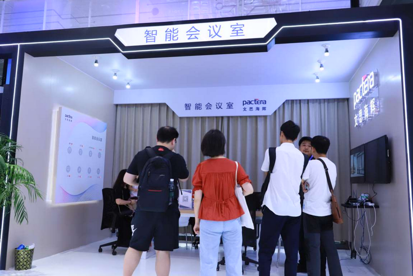 现场,一间按照真实比例搭建的智能会议室吸引了众多嘉宾前来参观体验。文思海辉智能会议室解决方案可利用会议室现有设备,整合语音控制、远程访问控制、门禁鉴权管理等模块,实现会议管理一键操控。并对接现有会议预约系统,访客登记系统,考勤系统,同时集成各类设备做统一化管理,让繁琐的工作便捷化。无论是哪种会议模式,都可通过一个应用平台完成所有设备的操作,还可实现个性化设置,营造舒适、简洁、高效的办公环境。