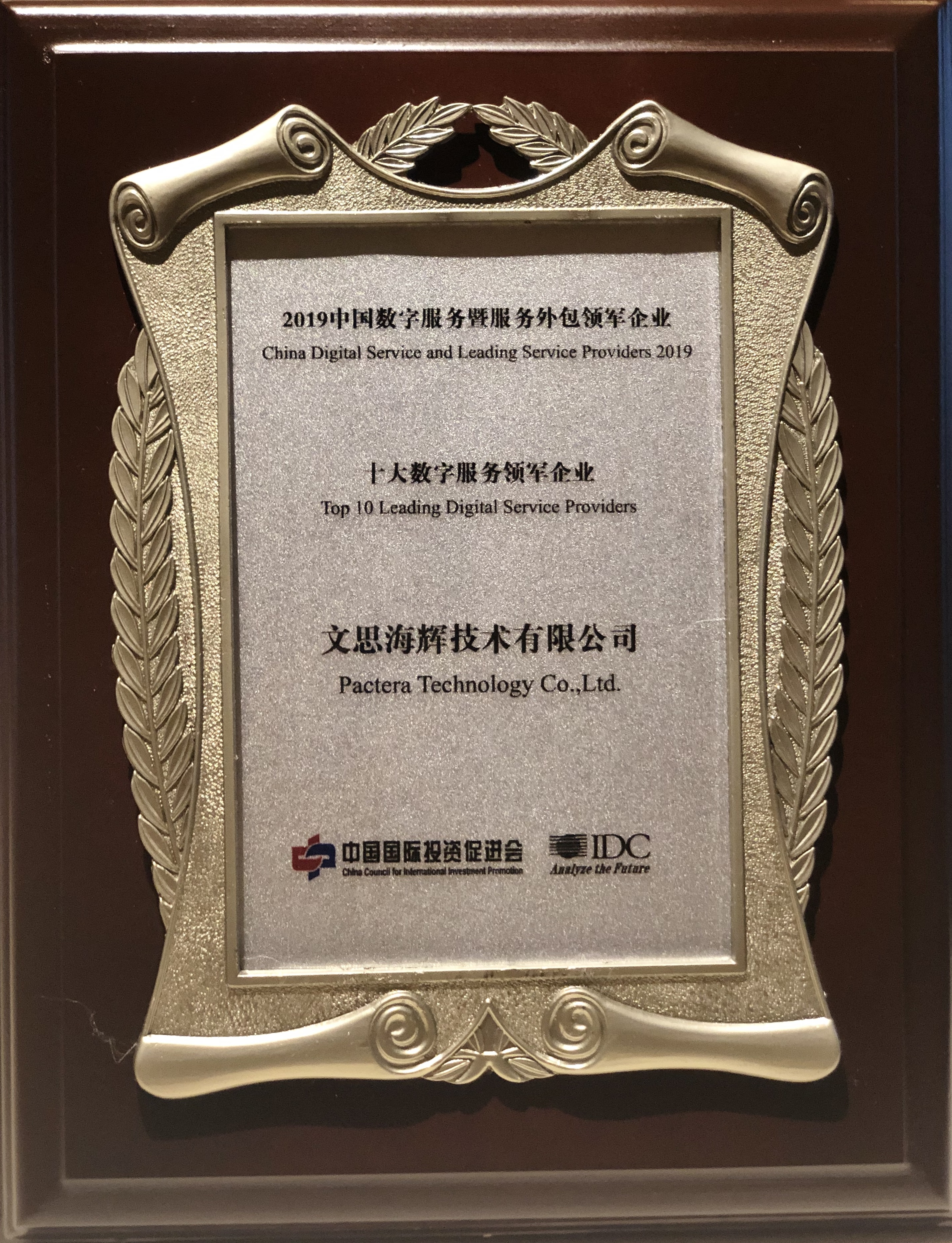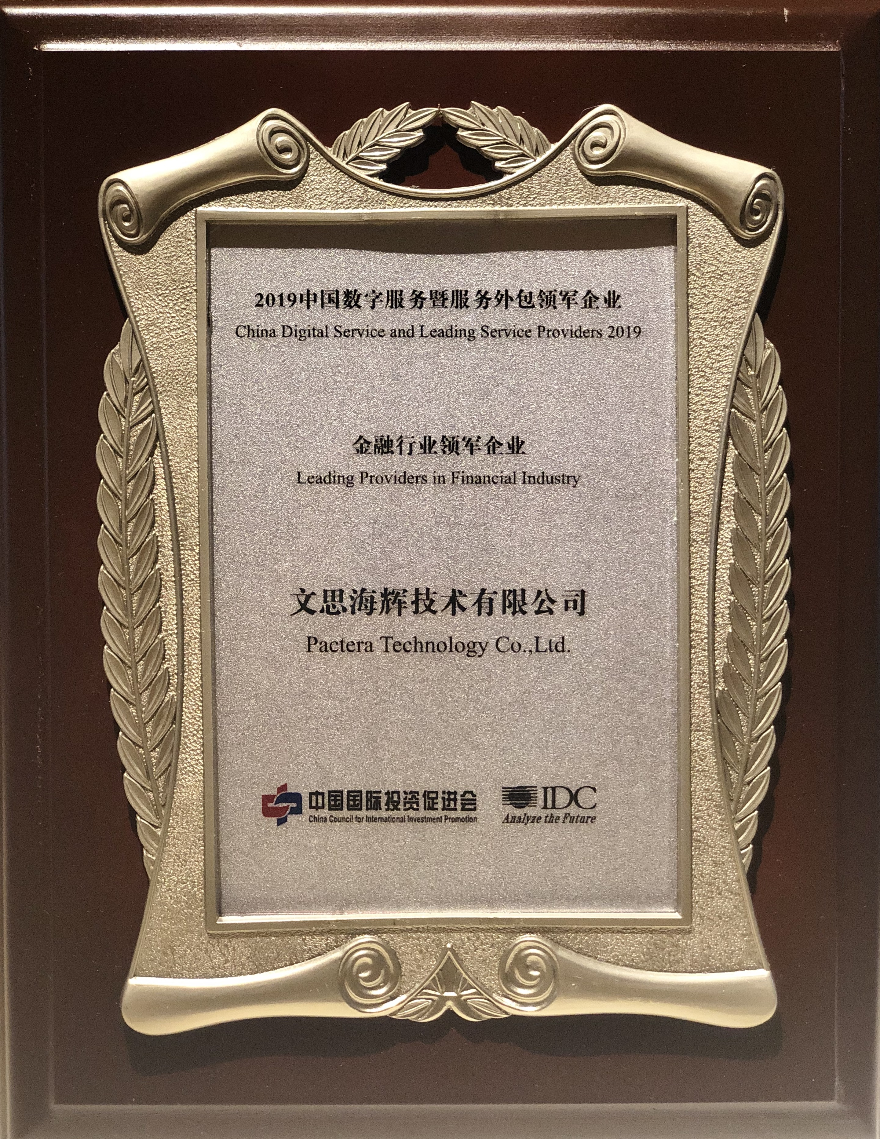 大会期间,中国数字服务暨服务外包领军企业推介会上,文思海辉揽获“2019中国数字服务暨服务外包领军企业”、“十大数字服务领军企业”、“金融行业领军企业”三项荣誉。